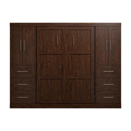 Bestar Pur Full Murphy Bed with Closet Storage Cabinets (109W) in Chocolate
