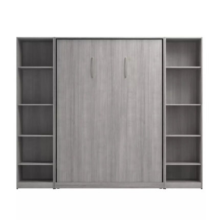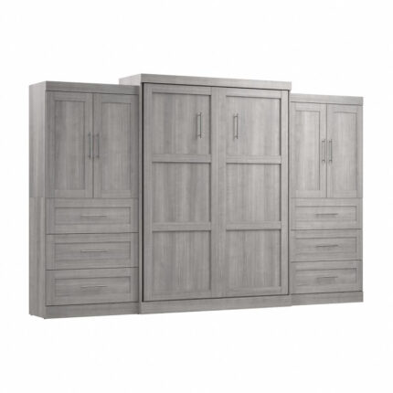 Bestar Pur Queen Murphy Bed with Wardrobes (136W) in Platinum Gray