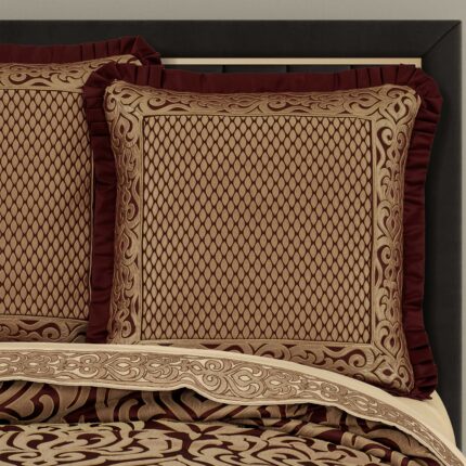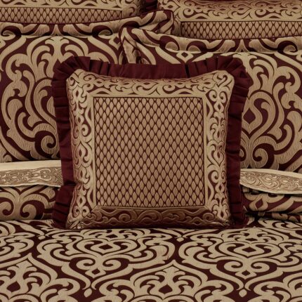 Renzo Crimson and Gold Square Decorative Throw Pillow 20″ x 20″