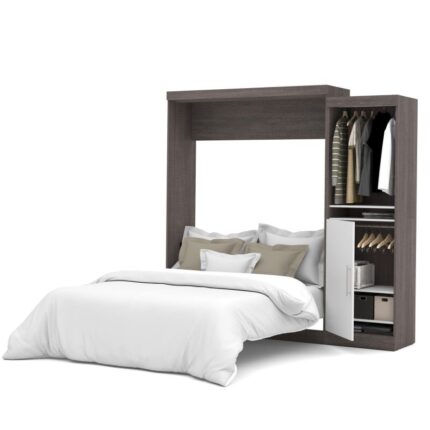 Bestar Nebula Queen Murphy Bed with Storage Unit (90W) in bark grey & white