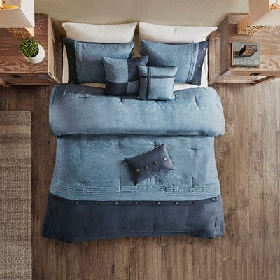 Madison Park Boone 7 Piece Faux Suede Comforter Set in Dark Navy, King MP10-6205