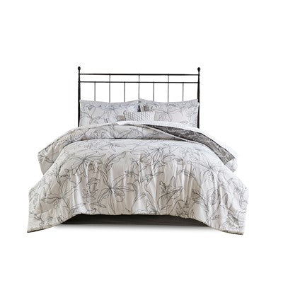 Madison Park Essentials Lilia Reversible Comforter Set with Cotton Bed Sheets in White / Charcoal, King MPE10-802