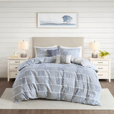 Madison Park Schafer 5 Piece Cotton Clipped Comforter Set in Blue, King / Cal King MP10-7352