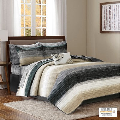 Madison Park Essentials Knowles Coverlet Set with Cotton Bed Sheets in Grey, Cal King MPE13-312