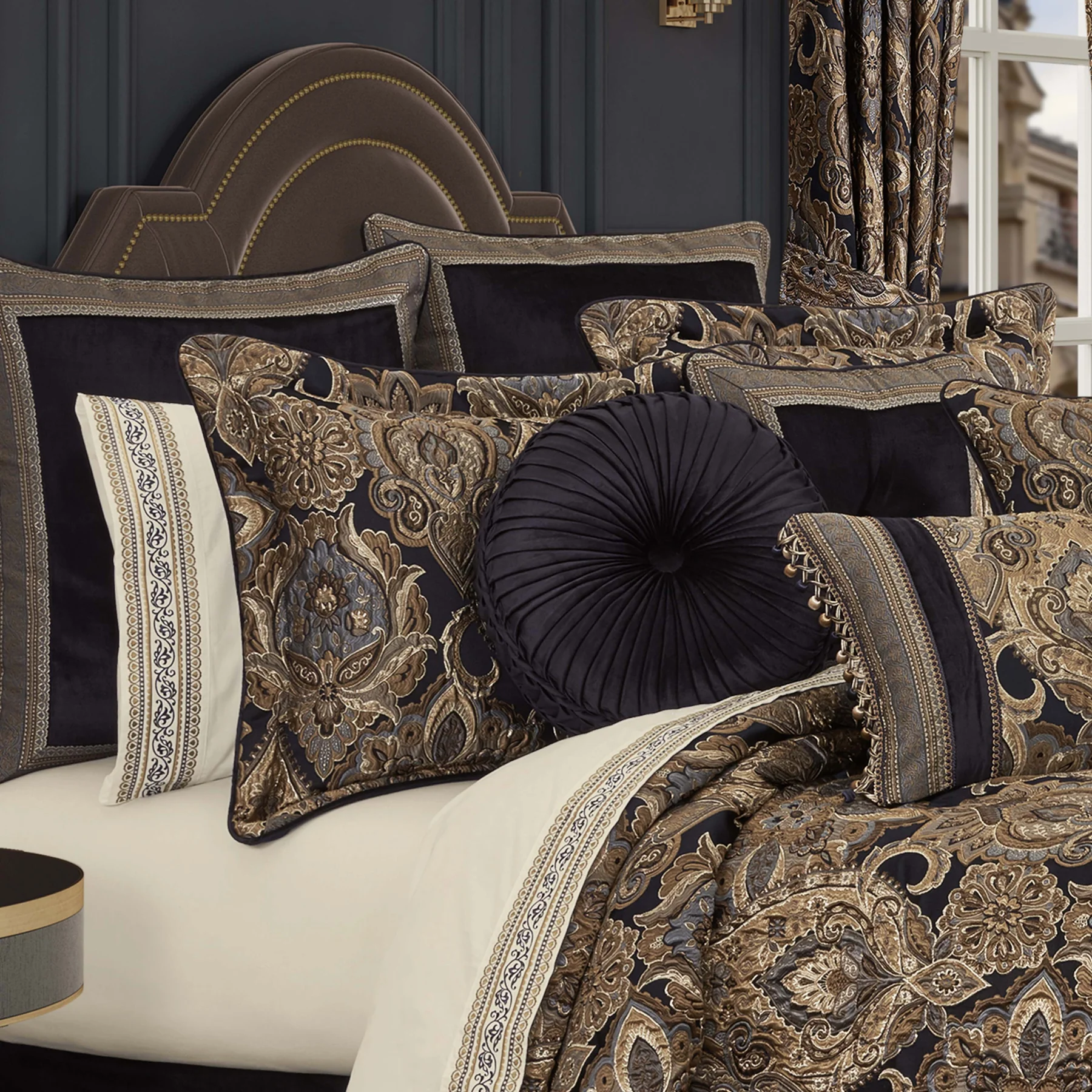 The Amara 4 Piece Comforter Set Is Designed To Capture Modern Timeless Elegance. Featuring An All-Over Luxurious Woven Medallion Design In A Range Of Indigo Blue And Golden Hues. The Comforter Is Piped All Around And Paired With Matching Shams. The Bed Skirt Is Also Trimmed With Split Corners, And A Woven Band That Pulls The Beauty All Together. The Amara Set Is Sure To Add A Touch Of Luxury And Classic Elegance To Your Bedroom Decor. Pair This Bedding Collection With The Amara Throw Pillows, Euros, And Window Treatments For A Complete Look.
