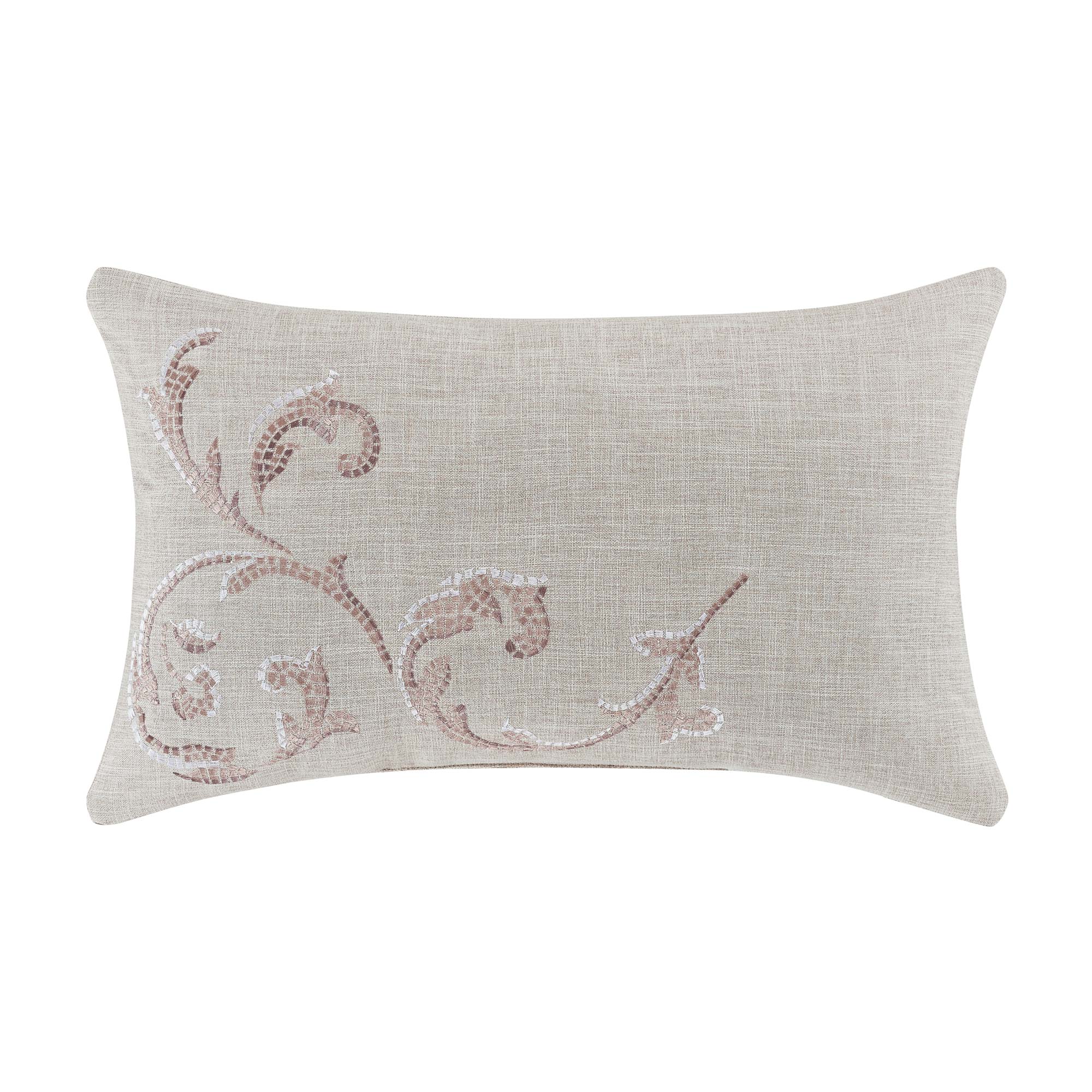 The Angeline Boudoir Throw Pillow Is Beautifully Embroidered With A Detailed Mosaic Technique. This Blush Embroidery Traces A Lovely Scroll Design That Complements The Traditional Damask Pattern Found On The Top Of Bed Of The Angeline Bedding Set By J. Queen New York. Pair This 13 X 21 Inch Pillow With The Angeline Bedding Set For A Complete Elegant Look.