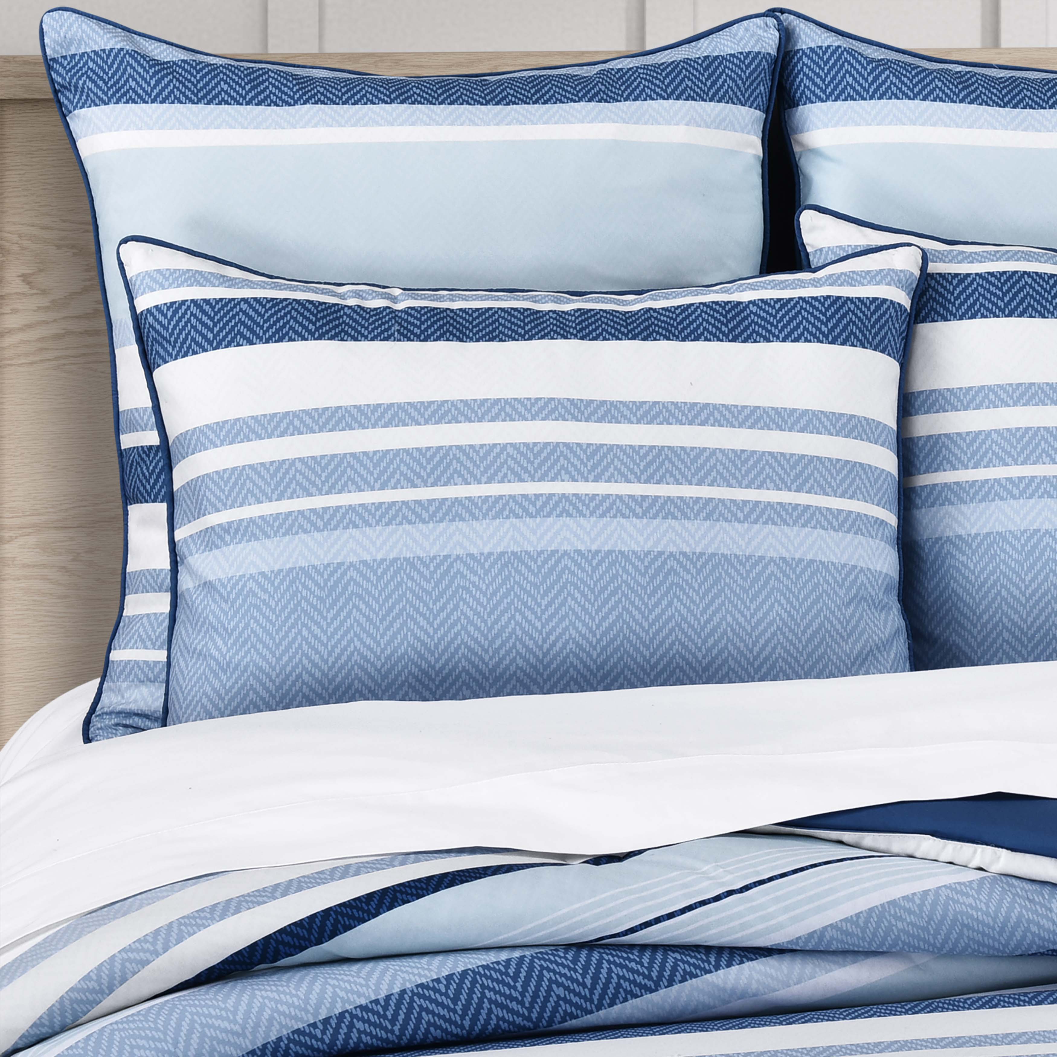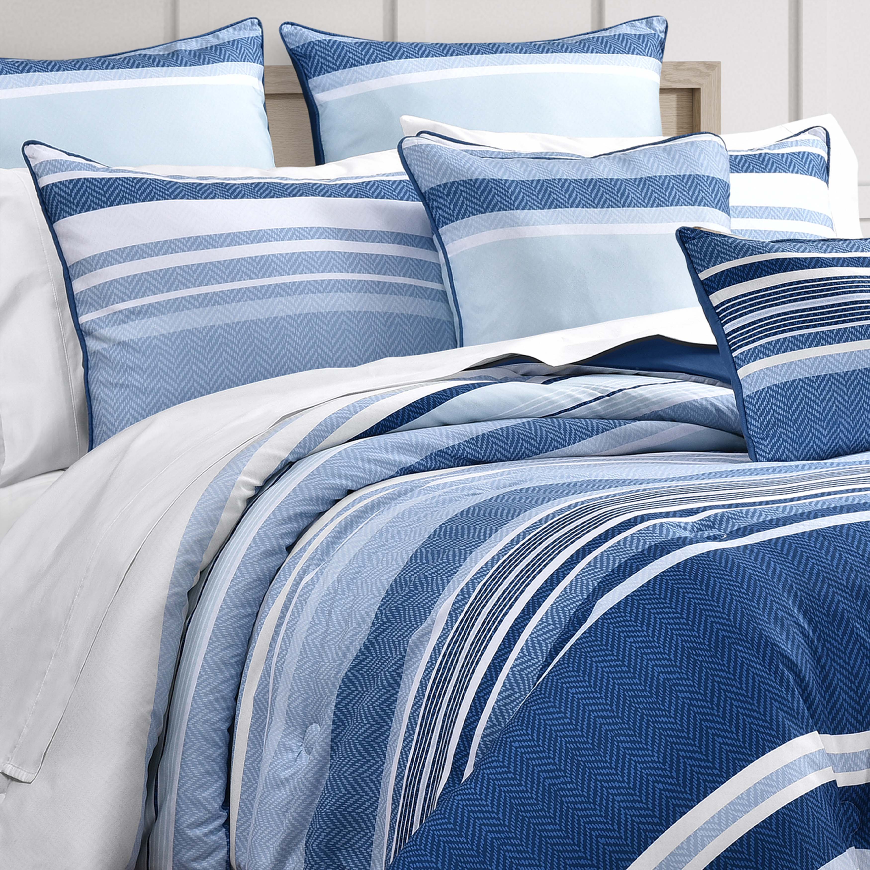 Fresh contemporary style gives the carson comforter set a casual look with inviting appeal. Featuring a multi-stripe print with a subtle herringbone pattern in shades of blue and white, on a soft microfiber fabric. Also included in the set are two pillow shams that feature a coordinate stripe pattern with a hidden zipper closure. Pair this bedding collection with the carson throw pillows, and euro sham for a complete look.