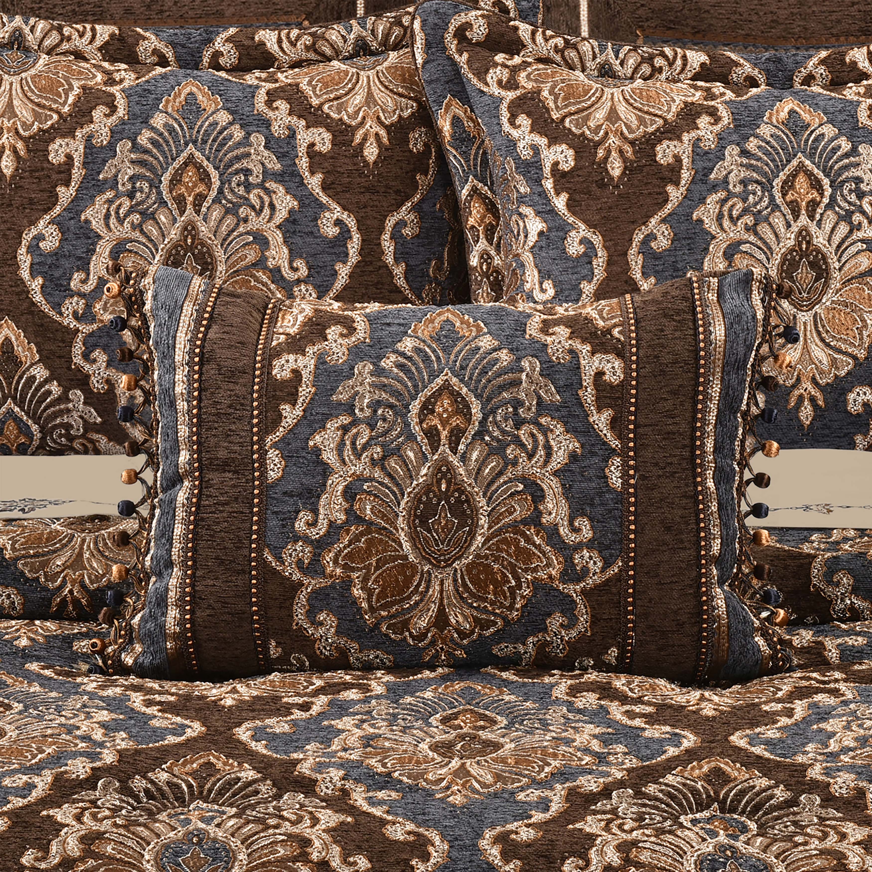 The sofia boudoir is beautifully constructed with a woven chenille damask in soft blue, chocolate, and shades of gold. This decadent pillow is embellished with a tassel ball fringe and a braided gimp trim, to add a taste of traditional luxury look to your decor. Pair this fully reversible pillow with the sofia bedding set by j. Queen new york for a complete opulent look.